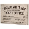Let's go, go-go White Sox! Reflect on your special memories at Guaranteed Rate Field with this vintage washed MDF wood sign. With black text detailing long-ago ticket prices, this retro wall art is the perfect addition to your game room, man cave, or workshop.