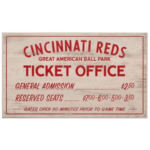 Take me out to the ballgame! Reflect on your special memories at the Great American Ball Park with this vintage washed MDF wood sign. With red text detailing long-ago ticket prices, this retro wall art is the perfect addition to your game room, man cave, or workshop.