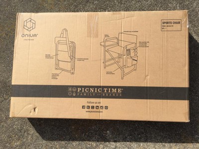 [This review was collected as part of a promotion.] Oniva sports chair in black I absolutely love this chair. I wish I knew about this style of foldable chair sooner. It is very comfortable to sit in and I feel the back support is really good. I don't feel like the fabric slouches when I sit in it. It feels sturdy and the back of my thighs are not resting on a metal frame like in my previous folding chairs. The side table is easy to open and is also sturdy. There are also lots of pockets for storage on the opposite side.