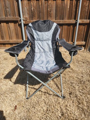 - THE TOTAL PACKAGE - Measuring 36" L x 33" W x 42" H, this camping chair for adults boasts an extra-wide, padded polyester seat and armrests, insulated drink holder, a zippered pocket