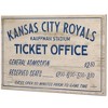 Kansas City, hey, hey, hey, hey! Reflect on your special memories at Kauffman Stadium with this vintage washed MDF wood sign. With blue text detailing long-ago ticket prices, this retro wall art is the perfect addition to your game room, man cave, or workshop.