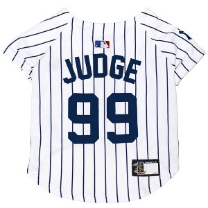 Batter up! Show everyone who your favorite All-Star is with Pets First MLB Players Dog & Cat Jersey. Designed with durable satin and mesh jersey materials, this unique uniform features a screen-printed name and number on the back, and logo in front in vibrant team colors. It also includes a woven jock tag label for your paw-tner’s name. Talk about a home run! Get your furry friend into the swing of things with Pets First MLB Players Dog & Cat Jersey.