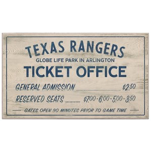 Take me out to the ballgame! Reflect on your special memories at Globe Life Park with this vintage washed MDF wood sign. With blue text detailing long-ago ticket prices, this retro wall art is the perfect addition to your game room, man cave, or workshop.