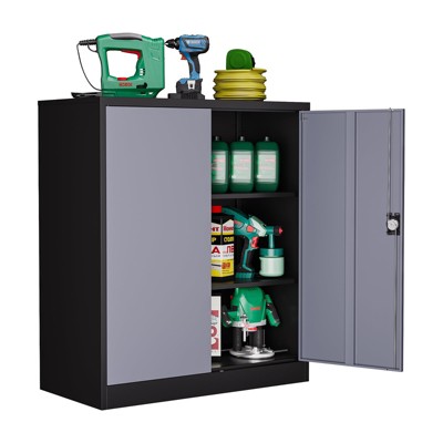 Mlezan 71" Metal Garage Cabinet: 2 Doors, 4 Adjustable Shelves, Lockable Steel Storage for Office, Home, Garage, School, or Gym. Durable and Secure.