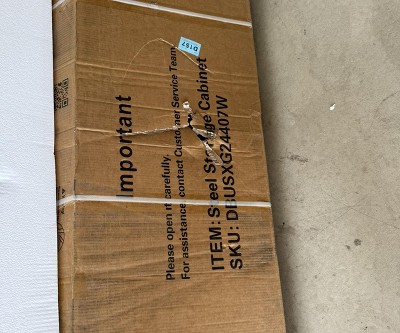 Metal Storage Cabinet Definitely takes 2 people to put it together. I would not have accepted the delivery if I would have been at the door. The box was damaged, as was the packing foam board inside. The metal was bent in the middle of the sidewall which causes a gap between the walls. It took most of the day for us to assemble! Target said I could bring it in for a full refund. It’s too heavy, & big for us to return. It’s the fault of careless Fed x.