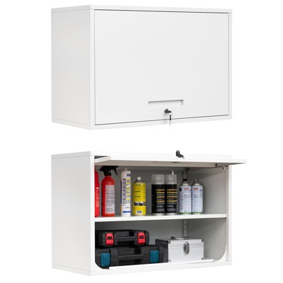 Mlezan Wall Cabinet: 16"D x 32"W x 22"H, Blue&Grey Steel. Heavy-Duty Floating Shelf for Garage/Workshop Tool Storage. Assembly Required.