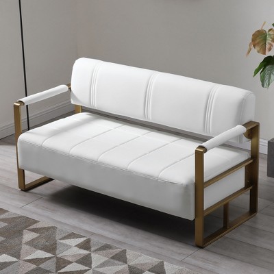- The loveseat features gold metal legs with adjustable glides, allowing you to find the perfect level of stability on any surface. The metallic finish adds a touch of sophistication to the overall design.