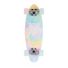 The Roxy Mini Pintail Cruiser Skateboard is a 25" lightweight board designed for kids ages 8 and up. Its 7-ply high-density wood deck provides strength and flexibility, while fine grid grip tape ensures secure footing for learning balance and control. The 60mm 85A soft PU wheels, 95A bushings, and Geo Lite trucks deliver smooth rides and easy turning on sidewalks and pavement. ABEC-3 bearings and a hardened axle provide reliable speed and durability for everyday use. With a 25" x 7.5" deck and 13.8" wheelbase, this compact cruiser is easy to carry and control, making it perfect for young beginners learning to skate or just enjoying casual rides around the neighborhood.