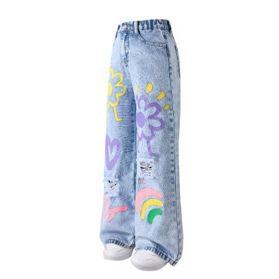 Let your teen shine with these Girls' High Waisted Distressed Wide Leg Jeans. The trendy colorful patches, from cute flowers to vibrant rainbows, add a personalized touch that screams individuality. With high - waisted design for a flattering fit and wide - leg cut for freedom of movement, these jeans are made from soft denim. Perfect for school days, weekend hangouts, or family outings, they combine style and comfort effortlessly.