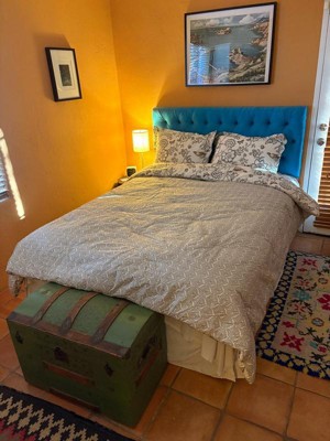 [This review was collected as part of a promotion.] The Levtex Home Mockingbird Comforter Set comes in a cute matching drawstring bag. It’s a medium weight comforter that would be appropriate for most seasons, and can be paired with additional blankets for winter warmth. I really love that the outer fabric is 100% cotton. It’s relatively soft, and breathable. The batting inside is polyester, which makes it very easy to wash. I popped mine in my home laundry machine as soon as I got it. It fit in a standard sized front load washer, and it was easy to clean and tumble dry. Like all cotton fabrics, it did get pretty wrinkly in the wash. One could iron it if that bothers you. The comforter is reversible, with a cute gray and white print on the back. I really like both of the prints. They are neutral, but have a stylish Indian/bohemian look to them that adds some extra interest to the room. I like that the colors go well with a variety of room styles. The pillow shams fit a standard size pillow perfectly. They have an envelope flap on the back to keep your pillow snugly inside. Overall, I am very pleased with the quality of this set. I would recommend it. I received this product for free in exchange for my honest review.
