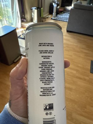 carbonated water, organic agave syrup, organic apple cider vinegar, organic lime juice concentrate, organic black tea extract, natural flavors, monk fruit juice concentrate, black pepper extract