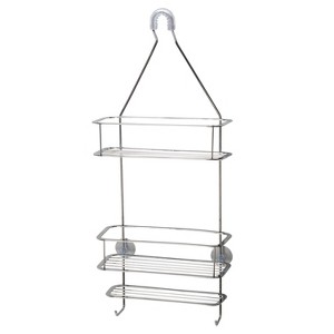 The Shower and Bath Caddy from Bath Bliss brings organization to your messy bathroom. Designed from a rust-resistant metal, this shower caddy features a contoured mount design that fits most shower heads for easy installation. Featuring two horizontal, slatted shelves that can accommodate anything from shampoos, conditioners and face wash bottles to bath sponges, wash cloths and more, this shower caddy comes with a bottom shelf to keep your bar soap secure. Plus, two accessory hooks provide space-saving storage options for your loofahs and more.