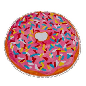 Moda at Home Doughnut Round Velour Beach Towel with White Pompom