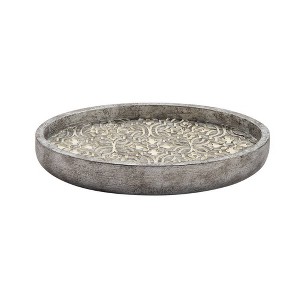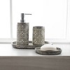 Part of the Marrakesh bath collection, this exquisite soap dish brings a touch of elegance to your bathroom. Made from high-quality resin, it features a dark grey hue with an intricate white floral pattern, creating a striking contrast. Its durable construction ensures long-lasting use, while the unique design adds a sophisticated charm to any décor. This dish combines beauty and functionality.