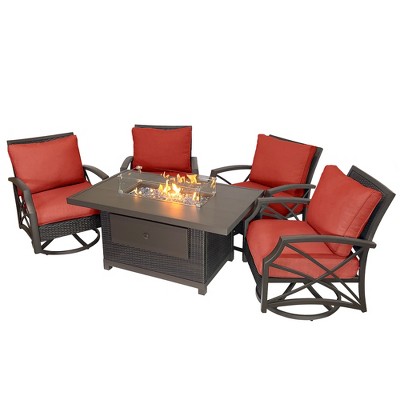- The fire pit doubles as a coffee table when not in use, with a spacious surface for drinks and snacks.