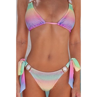 Lumiére 'Candy Pink' Lurex Triangle Crystal Bikini Top Candy Pink Small