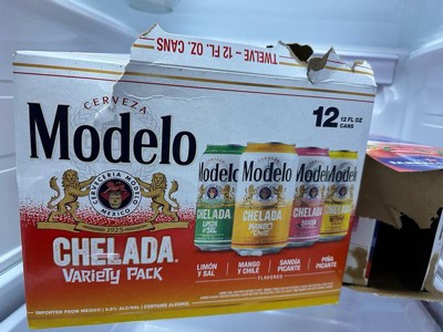 - 12 pack of 12 fl. oz. cans of Modelo Chelada Imported Beer; This mix pack includes three cans of four flavors