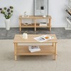 Modern 2-Tier Rectangular Coffee Table with Open Storage Shelf and Rubberwood Legs