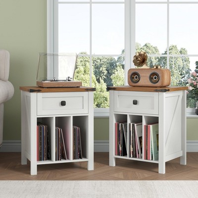 Modern 23" Fluted Nightstands Set of 2 with Charging Station, 2 Storage Drawers Bedside Tables for Bedroom, Living Room, White Alder