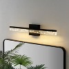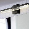 This light's linear design features clear acrylic with a seeded glass look, and a black metal finish. Our light fixtures work with LED-compatible dimmers; the acrylic bar can be rotated vertically or horizontally. This sleek LED light fixture is perfect for a single sink in a small bathroom; or use one over each sink on a double vanity. Integrated 12W LED Bulb. Color Temperature: 3000K. CRI: 80. Before cleaning any lamp shade or fixture, disconnect the power source. Wipe with a soft, dry cloth. Avoid the use of chemicals and household cleaners as they may damage the finish.