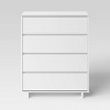 A: The dresser's solid color and modern design easily coordinate with various decor styles.
