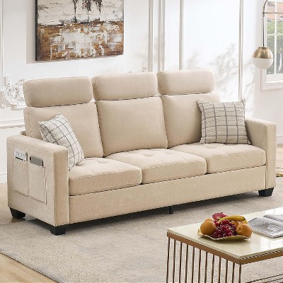 Transform your living space with this exceptionally designed 89-inch modern three-seater sofa, where contemporary aesthetics meet unparalleled functionality. This generously proportioned couch redefines relaxation with its deep seating system, innovative storage solutions, and premium fabric construction, creating the ultimate centerpiece for any modern apartment, lounge, or living room. Every aspect of its design has been meticulously considered to provide not just a place to sit, but a comprehensive experience of comfort and convenience.