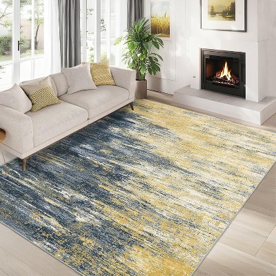 Modern Abstract 5x7 Area Rug, Washable Non-Slip Soft Carpet for Living Room, Bedroom, Dining Room, Brown