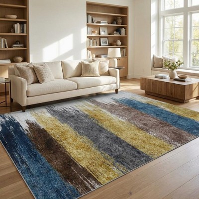 Modern Abstract Area Rug 9x12 Large Non-Slip Machine Washable Rug for Living Room, Easy Cleaning Stain Resistant Contemporary Foldable Carpet