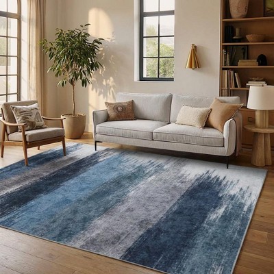 Modern Abstract Rug for Living Room 9x12 Washable Area Rug Non-Slip Rug Contemporary Indoor Dining Floor Carpet, Blue