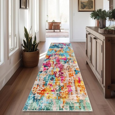 Modern Abstract Rug, Washable Non-Slip Kitchen Carpet ¨C Colorful Faux Wool Indoor Rug for Entryway, Bedroom, Laundry