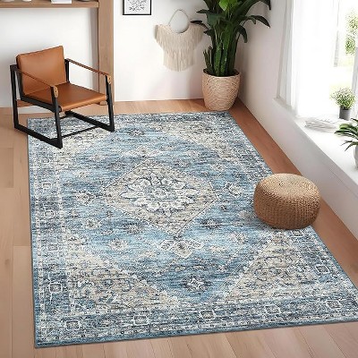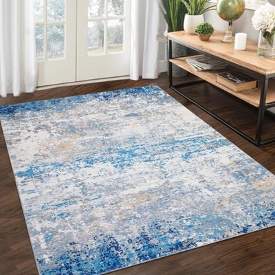 Modern Abstract Washable Rug – Non-Slip, Low Pile, Non-Shedding, Distressed Thin Design for Living Room, Bedroom, Dining Room, Office.
