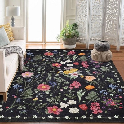 Modern Area Rug 9x12 Casual Indoor Rug Washable Non Slip Thin Abstract Geometric Striped Rug for Living Room Office, Black