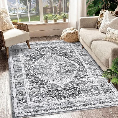 Modern Area Rug 9x12 Washable Rug Soft Faux Wool Throw Rugs Non Slip Low Pile Bedroom Rugs Non-Shedding Foldable Thin Accent Carpet, Gray