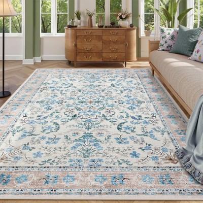 Modern Area Rug, Washable Abstract Accent Carpet with Non-Slip Backing, Soft Low Pile Throw Rug for Living Room Bedroom Office, Blue Orange