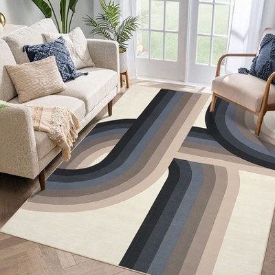 Modern Area Rugs 5x7 Machine Washable Geometric Throw Rug with Non-Slip Backing, Stain-Resistant Contemporary Accent Carpet, Soft Low Pile Rug