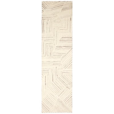 Modern Bordered Striped Runner Rug - Washable Stain Resistant Throw Carpet with Non-Slip Backing Low Pile Floor Cover for Hallway Laundry Bedroom