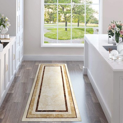 - [Contemporary Design] Our carpets can match any decor with their modern two-tone look and solid bordered pattern. Works as entryway rugs, hallway runner rugs, throw rugs for bedroom, home office rugs, bathroom rugs, laundry room rugs, kitchen rugs, kids' room rugs, nursery room rugs, etc.