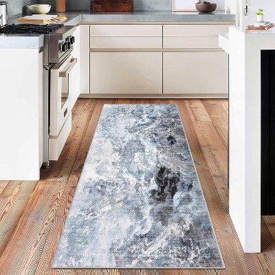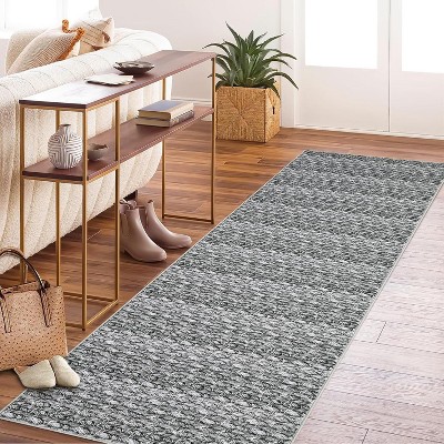 Modern Braided Printed Runner Rug – Stain-Resistant, Non-Slip Low Pile Carpet for Kitchen, Hallway, Entryway