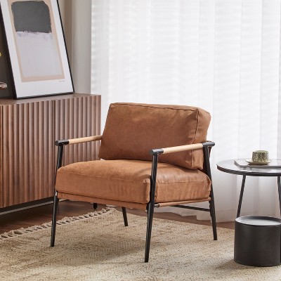 Modern Brown Upholstered Accent Chair with Metal Frame and Wood Armrests for Living Room or Office-Koiai