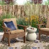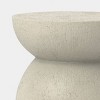 Complement your outdoor seating with this Modern Ceramic Round Patio End Table from Threshold™. Crafted from ceramic in an off-white finish, this modern patio end table features a round tabletop atop a round base for a chic look that blends well with any decor style and color palette. Place this end table next to an armchair to rest a cup of tea or coffee or showcase your favorite flower vase or small potted plant.
