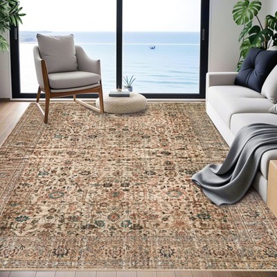 Modern Checkered Bordered 9x12 Large Rug Washable Rugs Stain Resistant Non Slip Non Shedding Indoor Carpet Low Pile Floor Cover