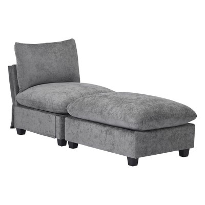 Modern Chenille Fabric Chaise Lounge Recliner with Armrests, Backrest and Side Storage Pockets for Living Room, Bedroom, or Office
