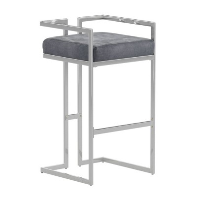 Modern Chrome Counter Height Stool with Upholstered Seat, Plush Comfort, Sleek Contemporary Design for Kitchen Island