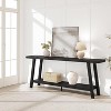 Transform narrow spaces into functional focal points with this sleek console table. The streamlined silhouette—featuring a generous tabletop and handy lower shelf—offers double the storage in half the footprint. Angled legs add modern architectural flair while ensuring rock- stability. Whether anchoring your entryway with keys and mail, displaying photos behind the sofa, or serving as a compact home office station, this versatile piece adapts to your lifestyle. Available in three curated finishes: rich walnut-brown for timeless warmth, rustic gray for relaxed farmhouse vibes, or bold black for urban sophistication. Crafted for everyday living, designed for lasting style.