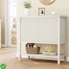 The modern console table has elegant fluted doors and an open shelf, showcasing a refined blend of contemporary elegance and minimalist design. The white finish brings cozy, contemporary charm to your entryway, living room, or hallway, Sleek Modern Design, Wooden Buffet Sideboard Sofa Table for Living Room, Hallway, Dining Room.