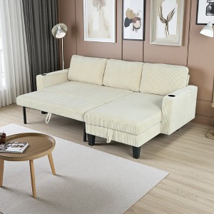 - Our sectional sleeper sofa is made of high-quality corduroy fabric, providing a comfortable touch. The sturdy wooden frame and stable plastic legs ensure a solid structure. Soft cushions and reinforced back offer excellent rebound and comfort.