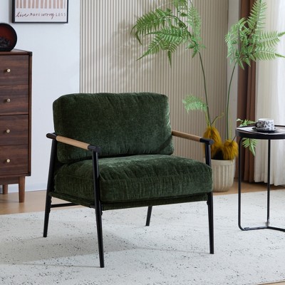 Modern Dark Green Upholstered Accent Chair with Metal Frame and Wood Armrests for Living Room or Office-Koiai