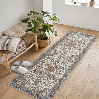 Modern Easy Area Rug Machine Washable Non-Slip Low Pile Stripe Pattern Rug for Living Room Bedroom Entryway