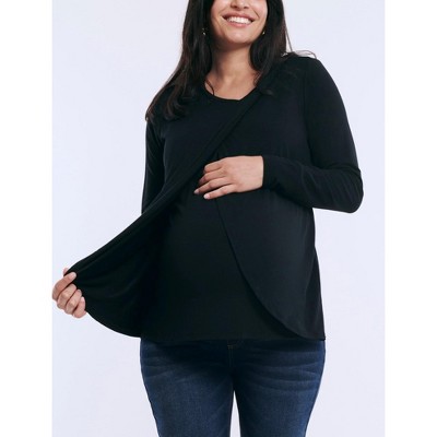 Wear it before, during and after pregnancy Features a clever double layer fabric design over the bust Round neck with self binding Long sleeves Machine cold water wash Hang dry 95% cotton, 5% spandex