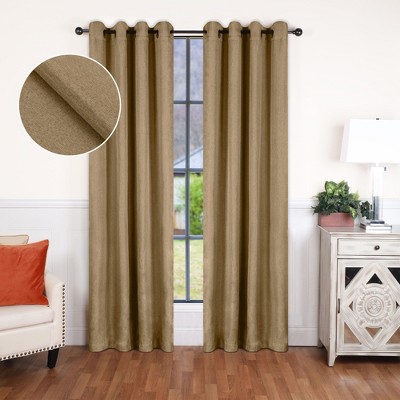 Modern Farmhouse Textured Room Darkening Semi-Blackout Curtains, Set of 2, 52"x96", Tan - Blue Nile Mills